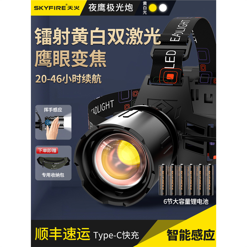 SF-TD-596J-S黑色激光双光感应头灯(新线路板,新电池盒,18650/2500)豪华配置