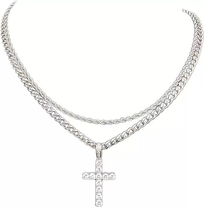 欧美新款嘻哈男女同款十字架麻花链NK链叠戴锁骨链个性潮流百搭