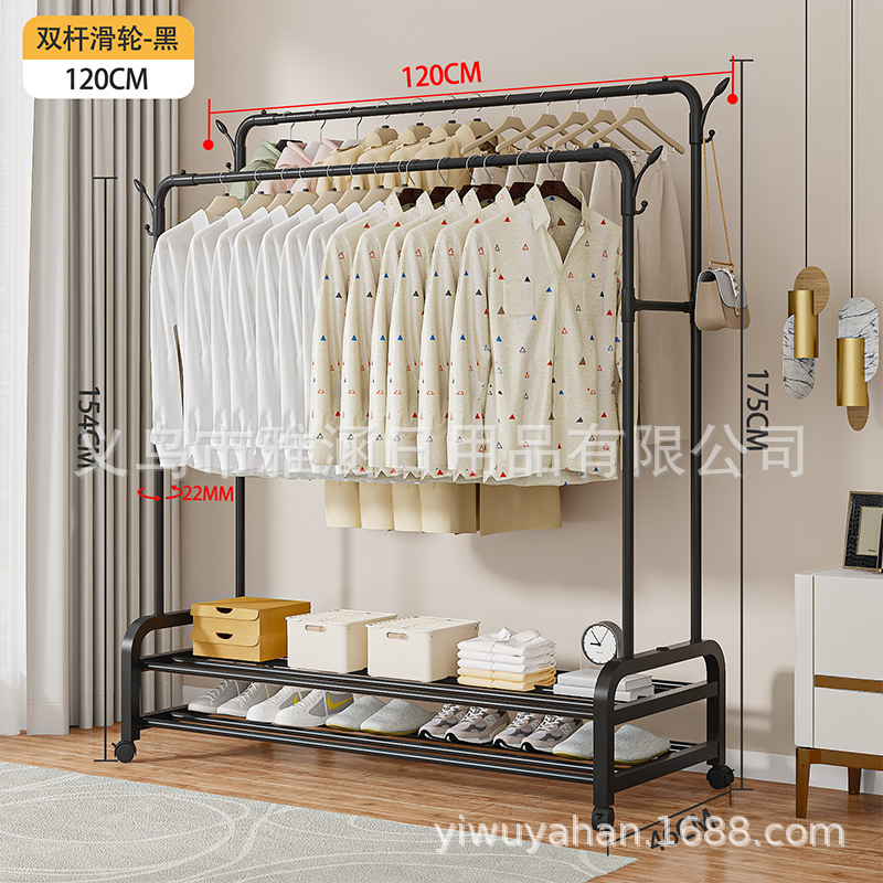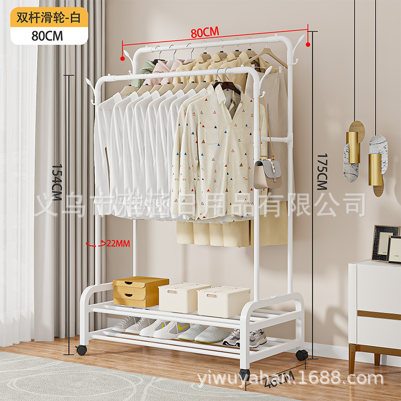 新款跨境双杆带轮简易款晾衣架嗮衣架落地卧室衣帽架阳台挂衣架