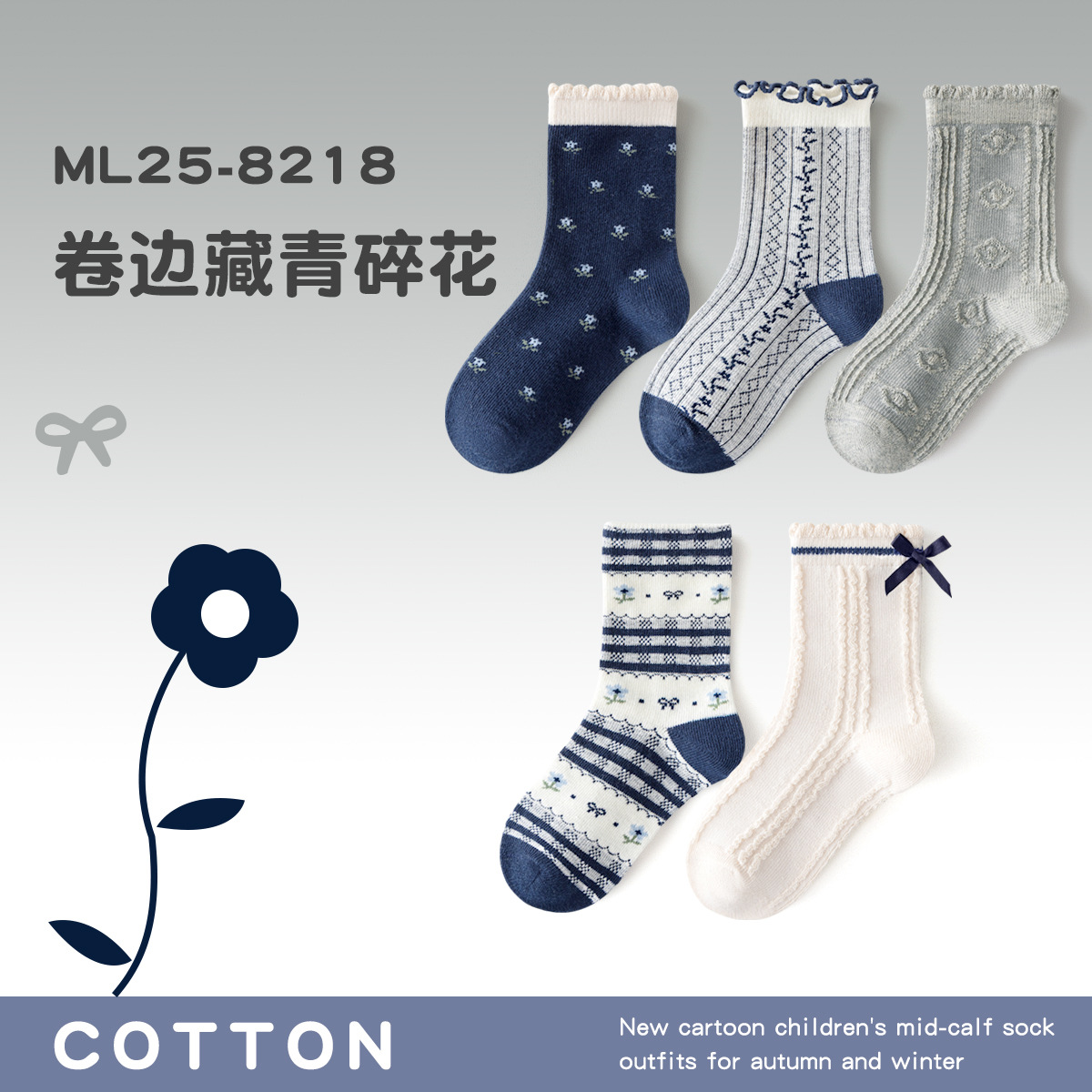 ML25-8218卷边藏青碎花