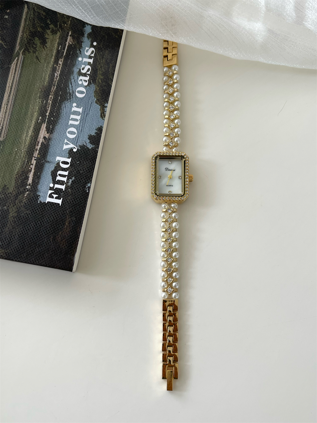 蒂米妮方形双排珍珠金色