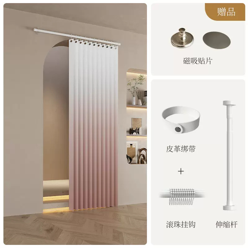 渐变蜜桃粉 单帘+杆【送滚珠挂钩+绑带】