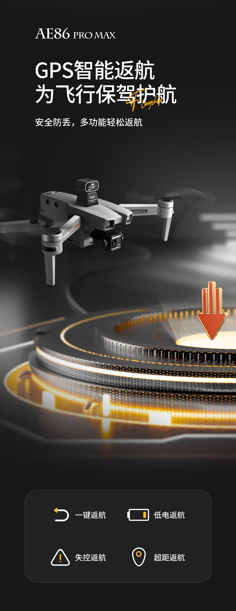 1、GPS一键返回起飞点,低电返航,无信号返航