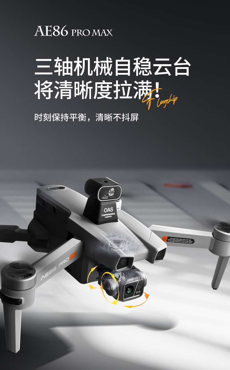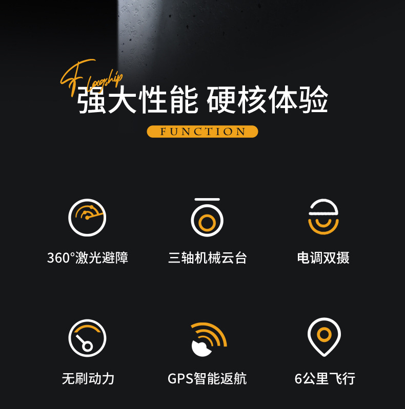 【功 能】:三轴机械增稳云台+电子增稳防抖+激光避障