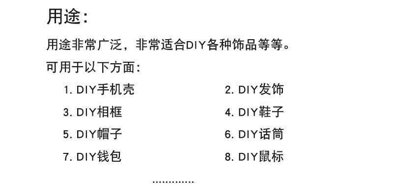 【适用范围】:适合diy设计、鞋子包包补钻、美甲diy、美妆用品、服饰装饰!