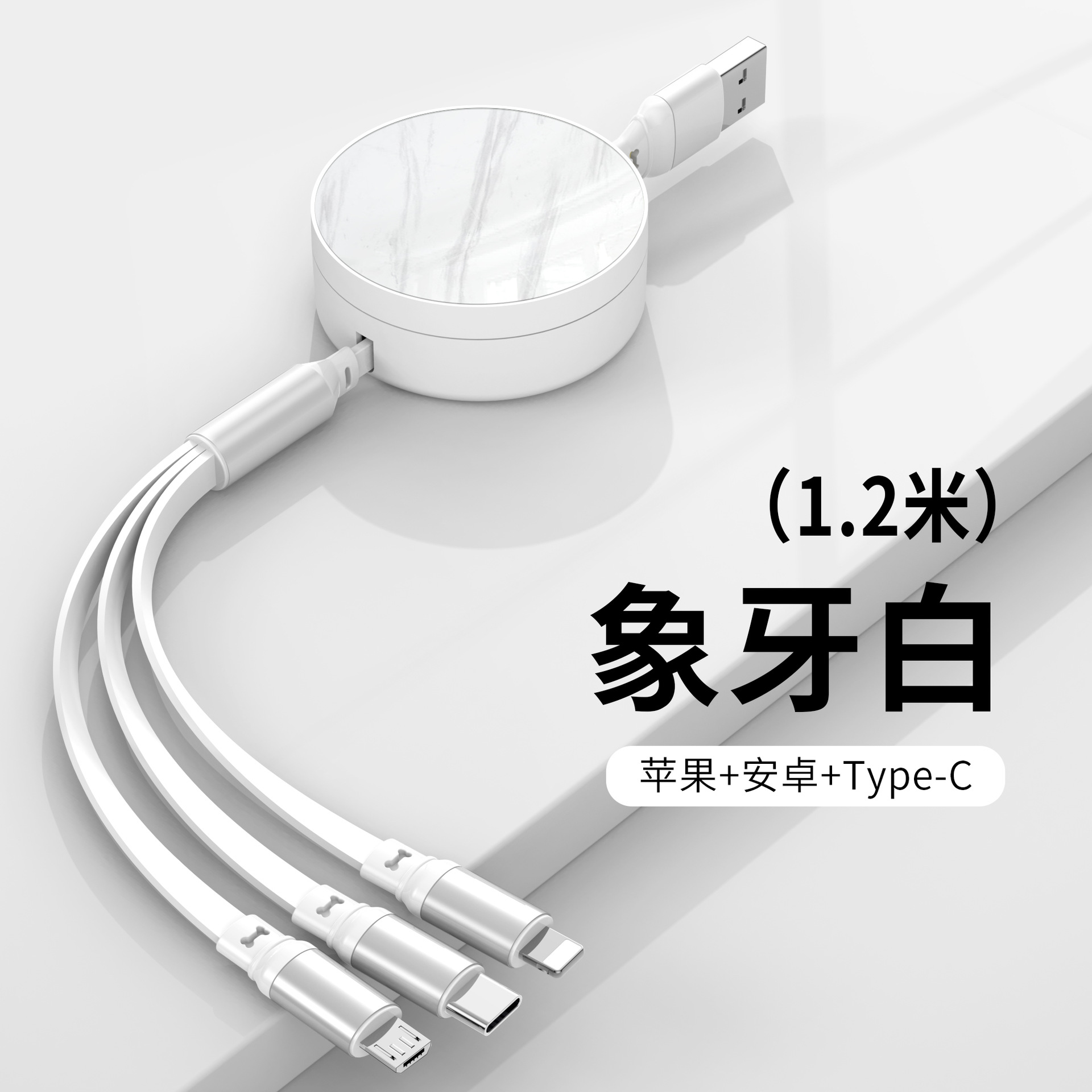 象牙白【苹果+安卓+typec】100W快充*伸缩款
