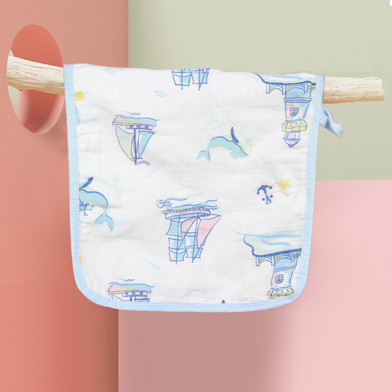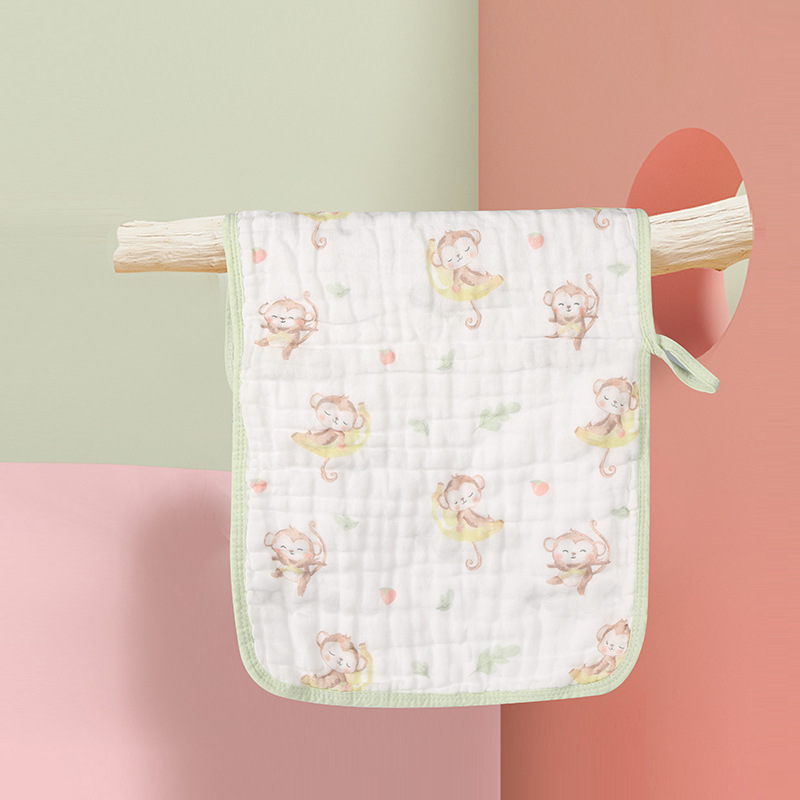 升级版带挂扣水洗纱布毛巾纯棉儿童洗澡小毛巾澡巾 洗脸巾30*50CM