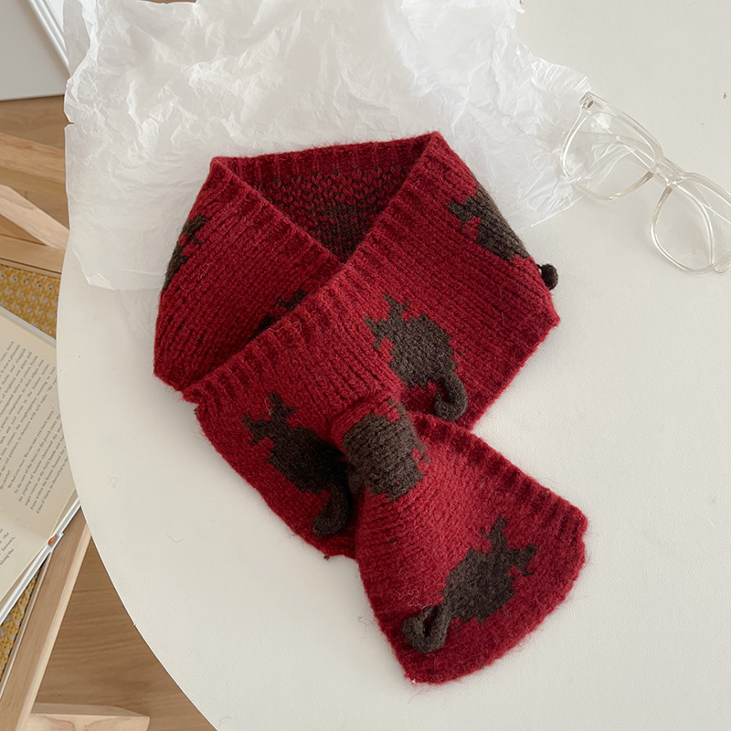 猫咪交叉小巾-酒红