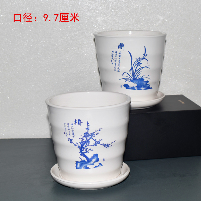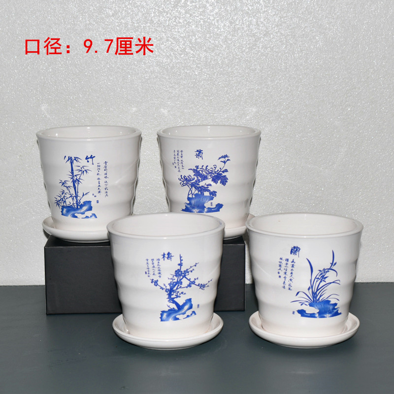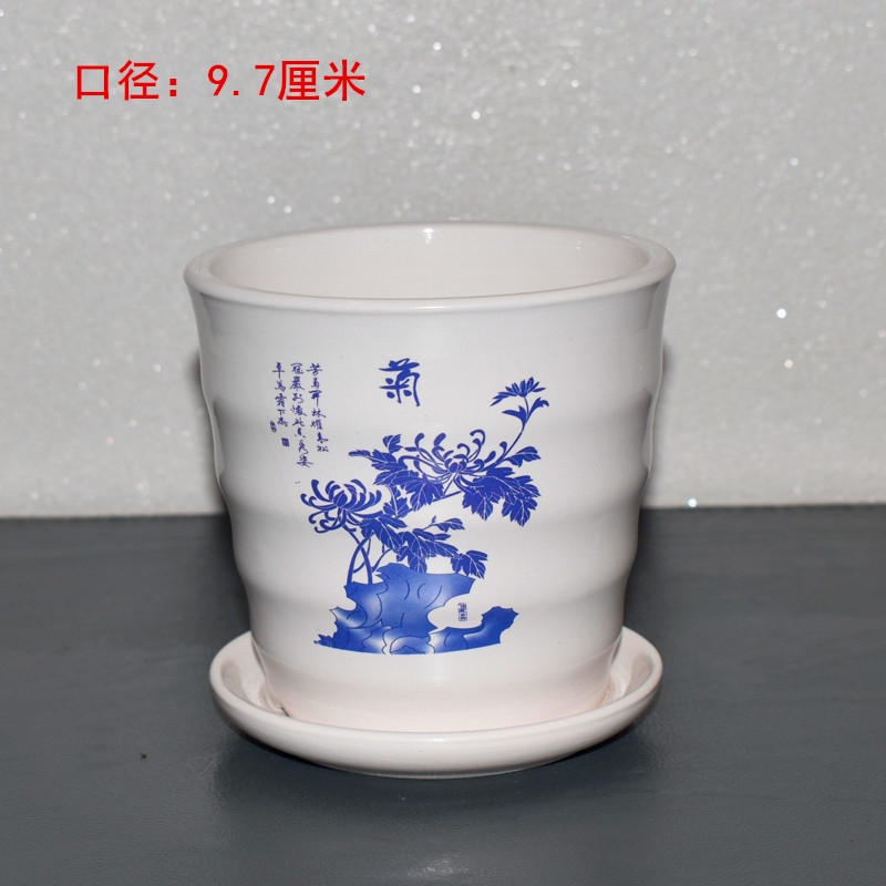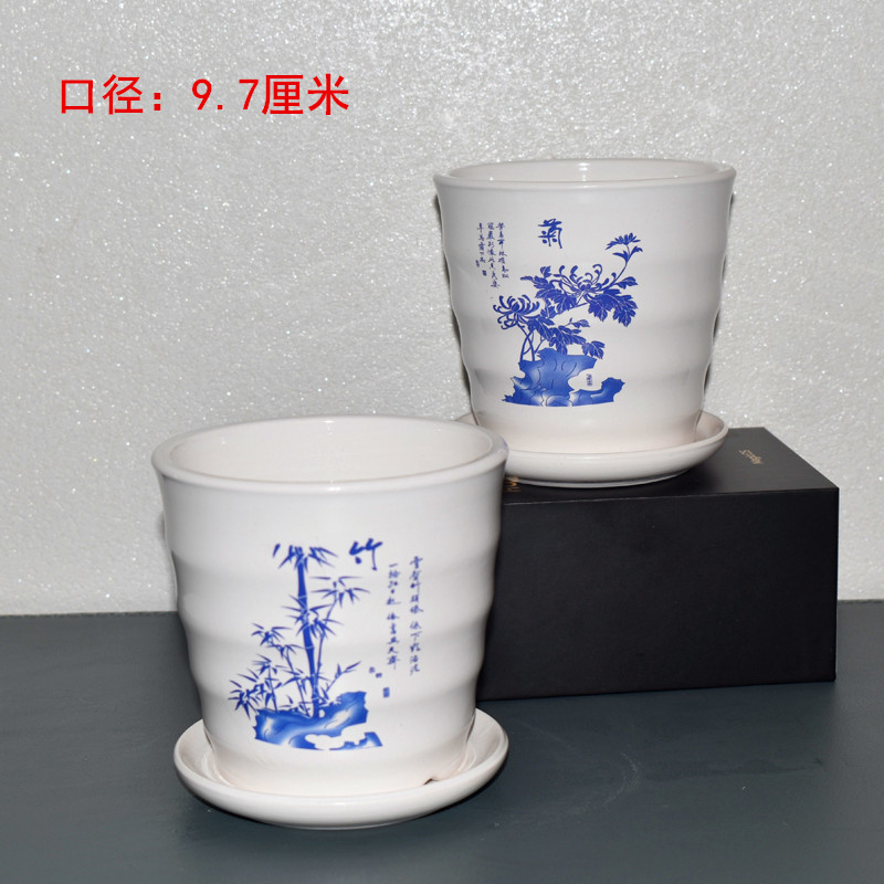 蓝色竖条盆