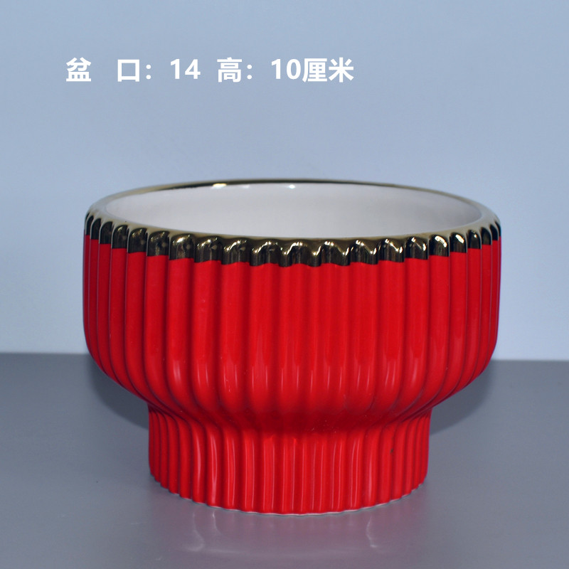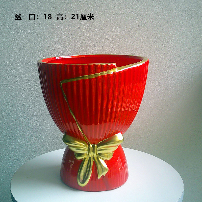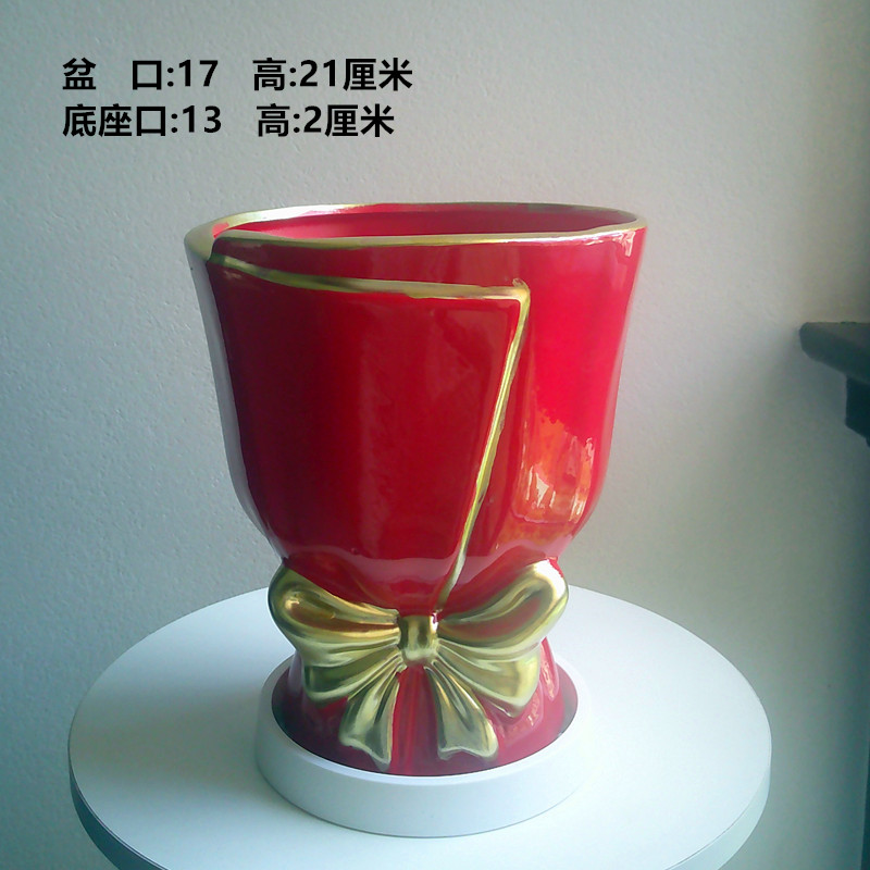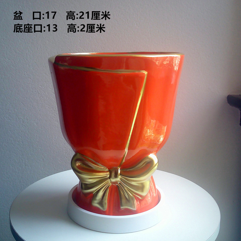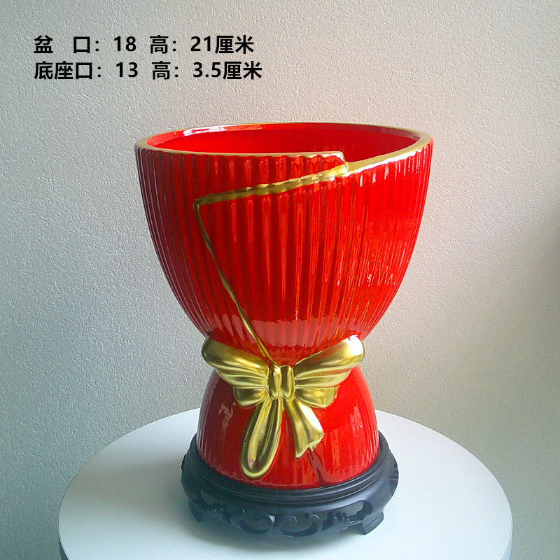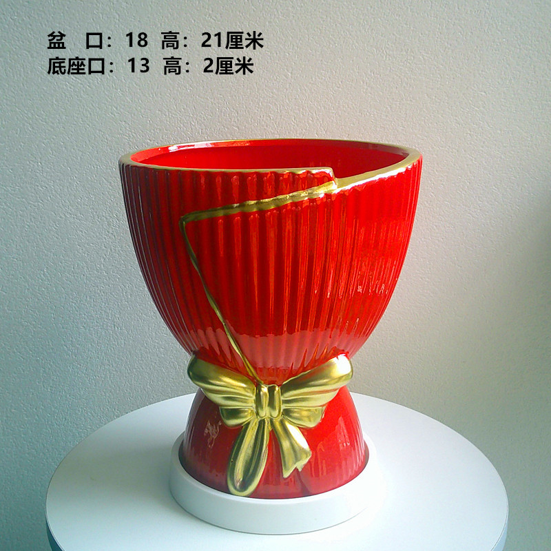轻奢大红盆+白底座