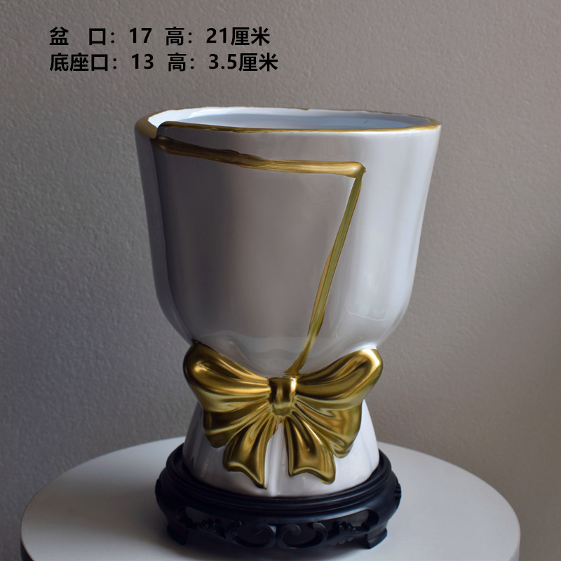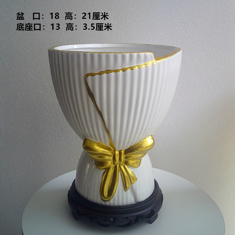 大吉大利盆+白底座