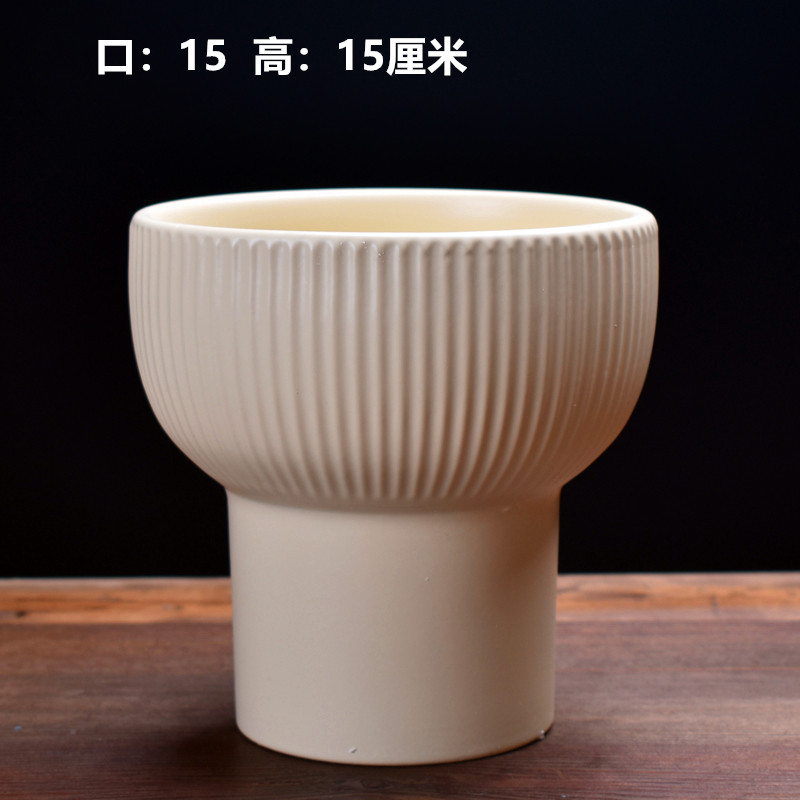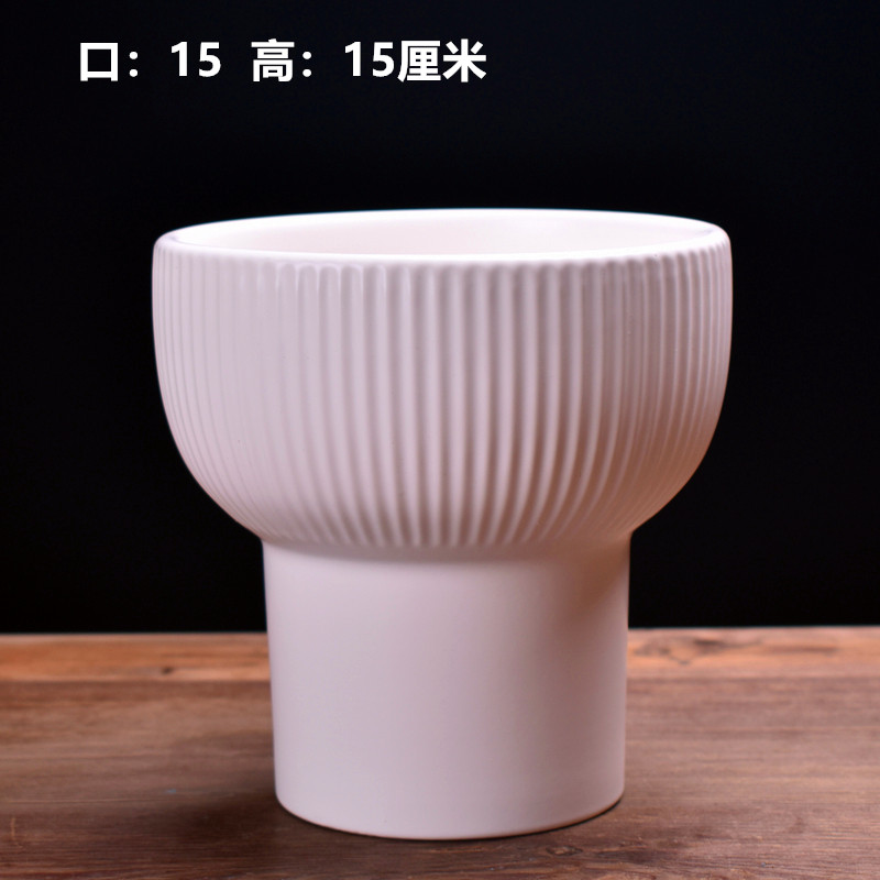纯白竖条盆