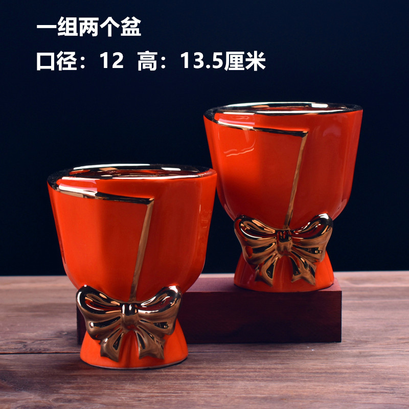 一组中号轻奢桔色盆