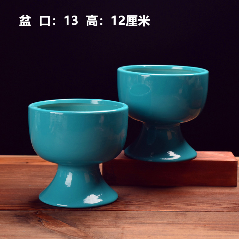 湖蓝色 一组高脚蓝盆