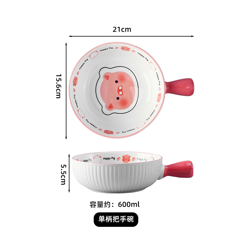 6寸条纹手把碗-可爱猪