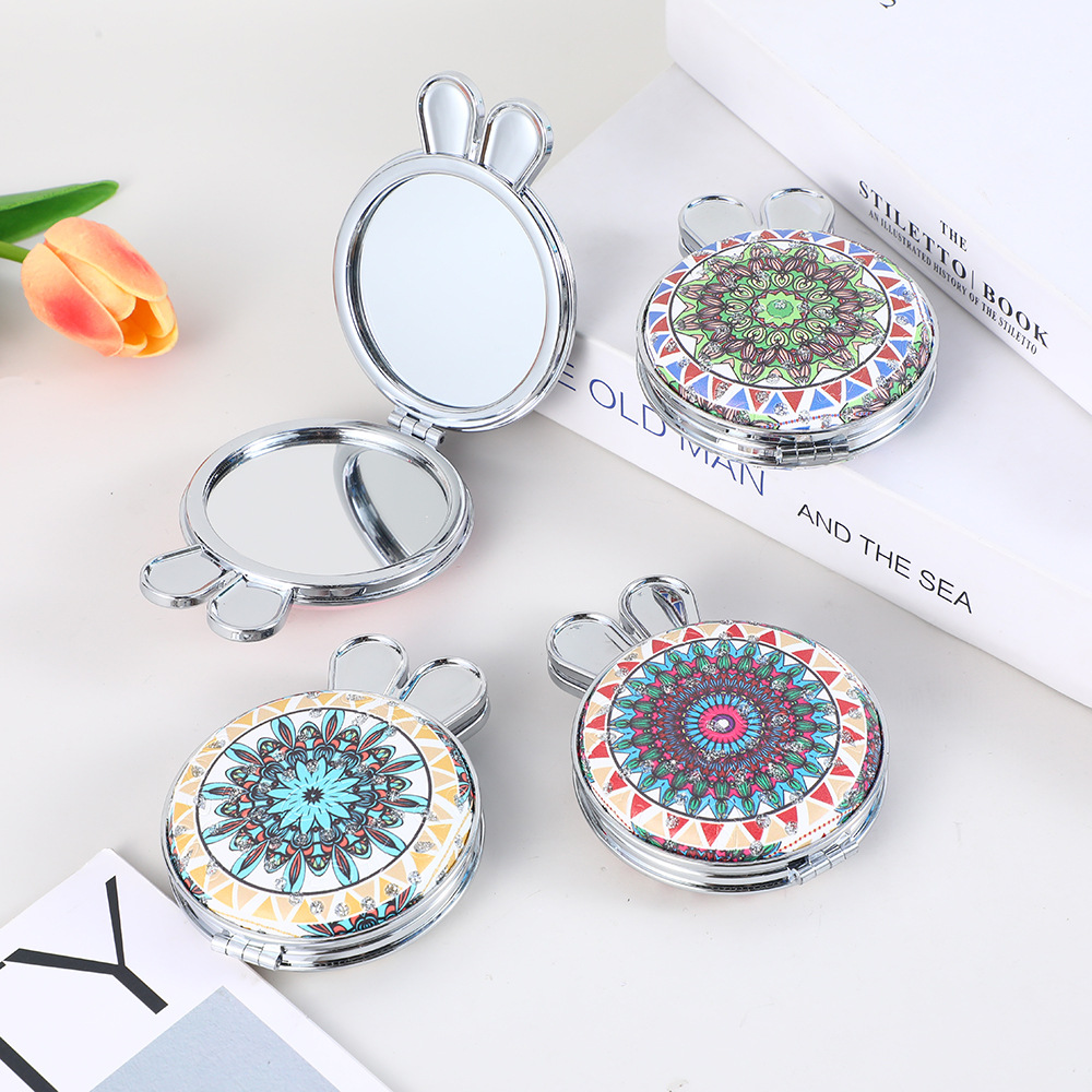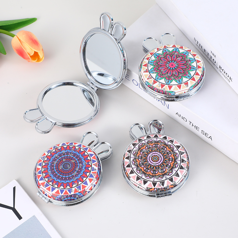 便携折叠双面化妆镜金属翻盖外出补妆镜子女生学生小圆镜家居装饰框架