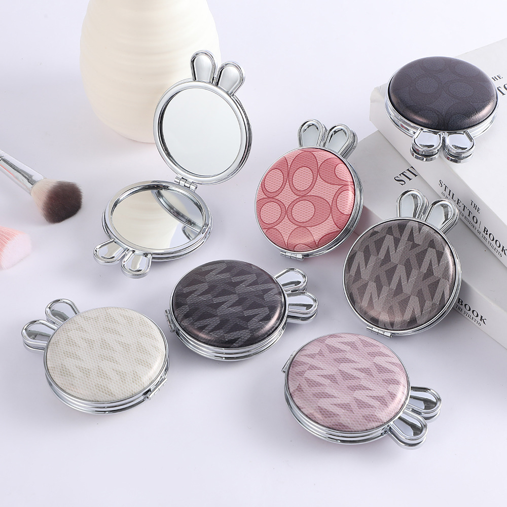 复古双面便携化妆镜小巧兔耳折叠民族风补妆镜女日用百货卫浴用品