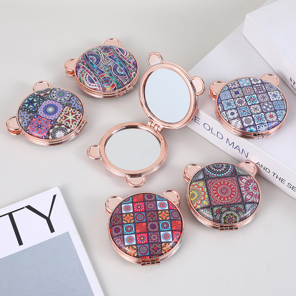 熊头面包双面折叠迷你化妆镜便携式学生手持随身镜子日用百货卫浴用品