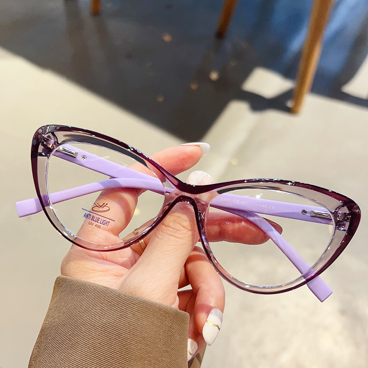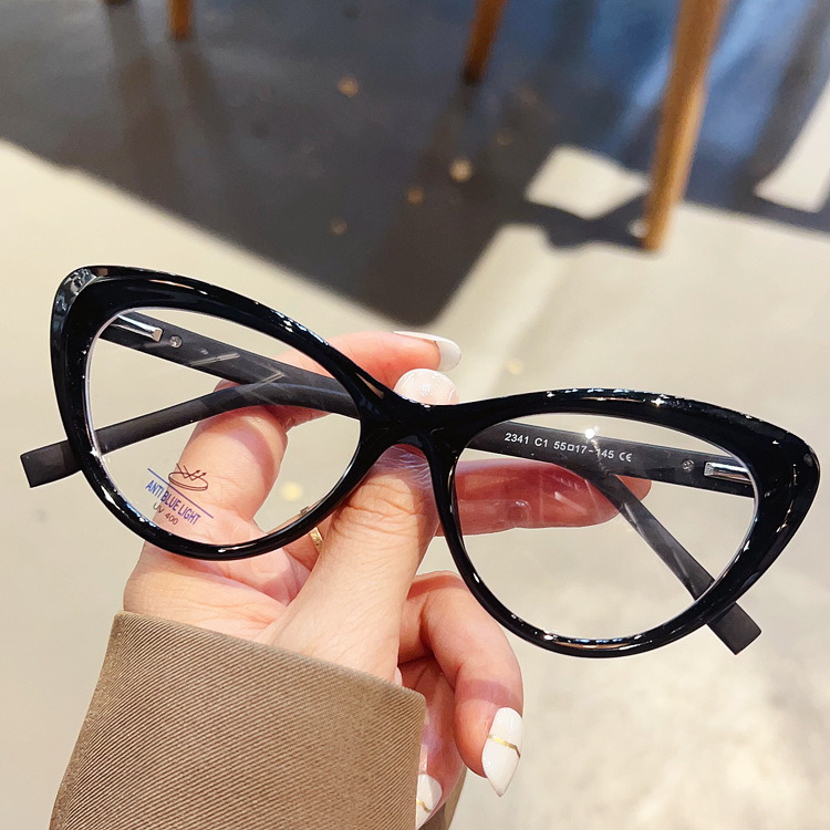 时尚新品眼镜框外贸热销弹簧TR90平光镜猫眼黑框防蓝光眼镜女2023