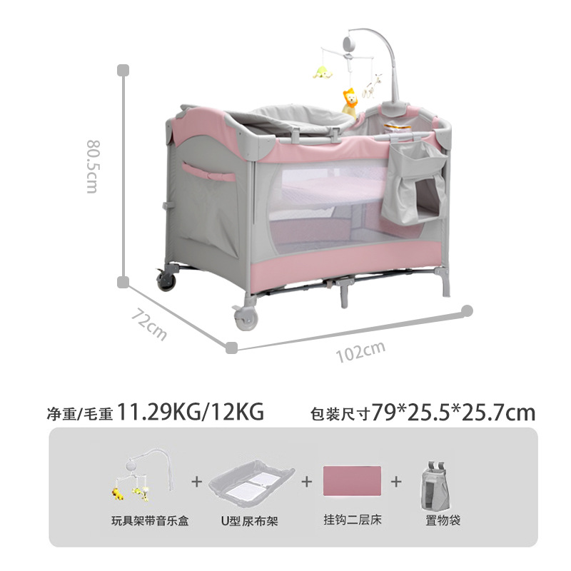 粉灰款侧边可下调(尿布台+置物袋+二层床及床垫+音乐玩具架)