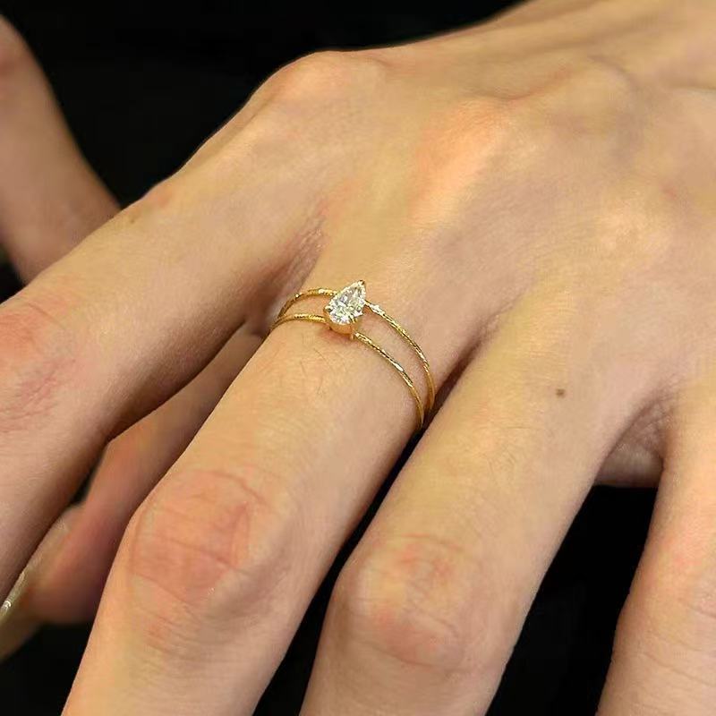 S925纯银极简线条水滴戒指灵动双层闪钻百搭轻奢女款饰品手饰指环潮流时尚