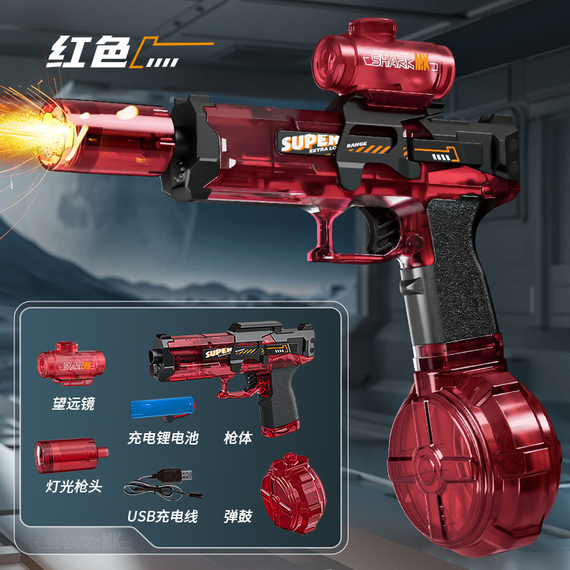 电动连发冰鼠水枪〖红色〗爆闪火光