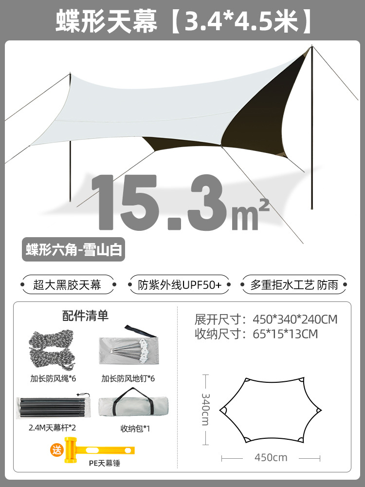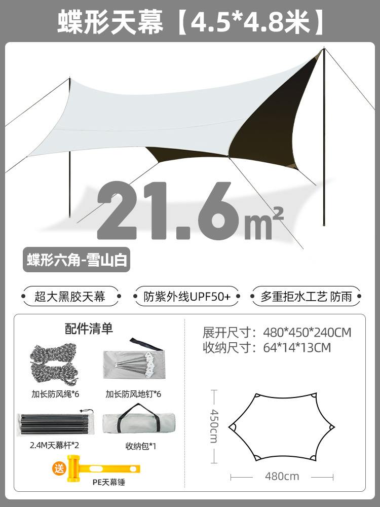 户外露营防晒黑胶天幕帐篷防紫外线野营便携凉棚防水遮阳蝶形天幕