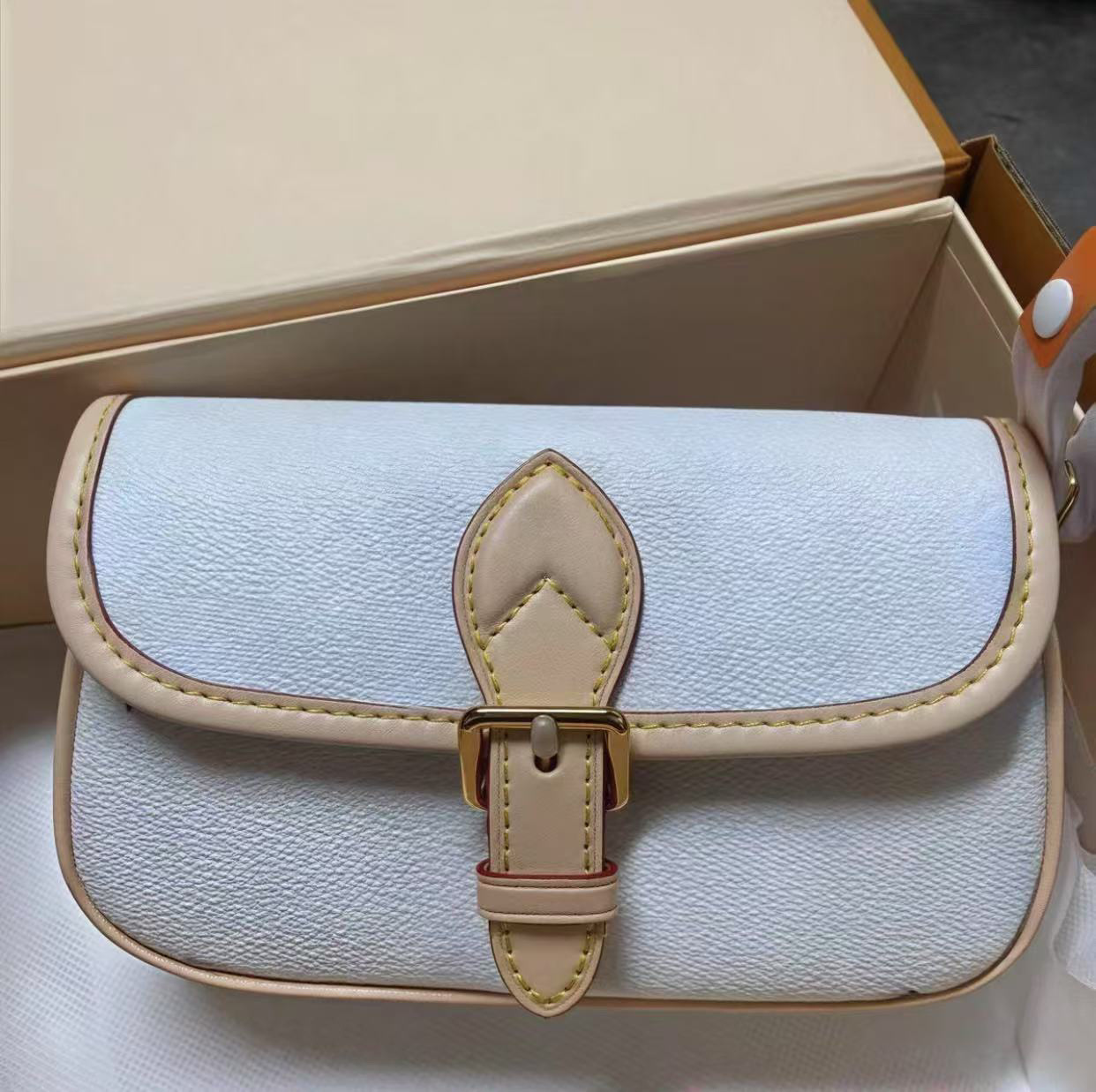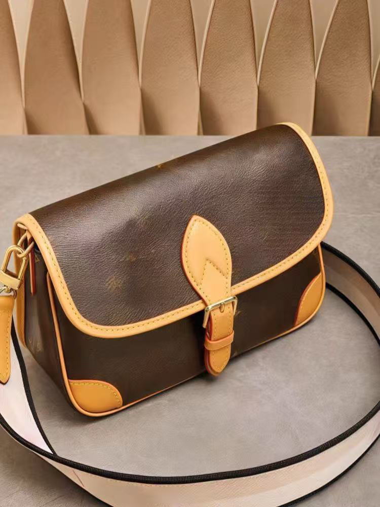 男士渠道货法棍包老花宽肩带单肩斜挎腋下包颗粒感强油润质感菱形点阵皮具男包袋