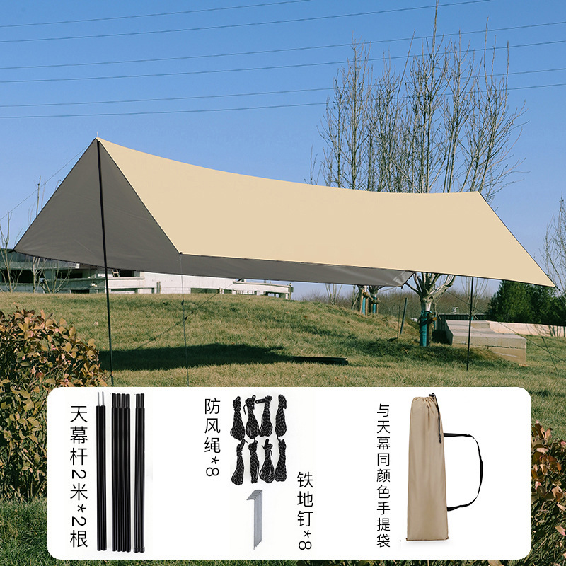 户外露营天幕帐篷黑胶涂银天幕方形蝶形天幕批发定制防风户外休闲