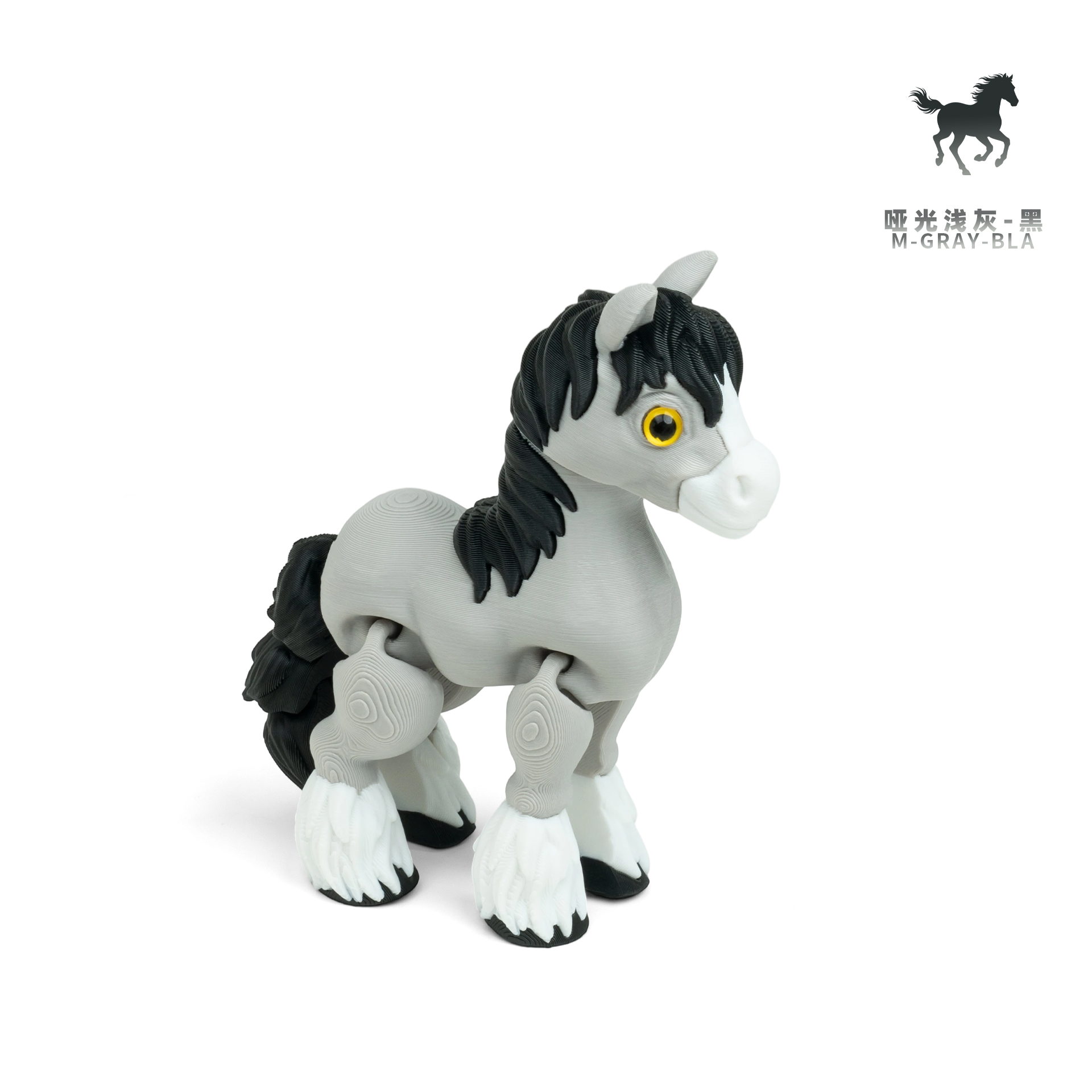 可爱小马驹-哑光浅灰-黑-白