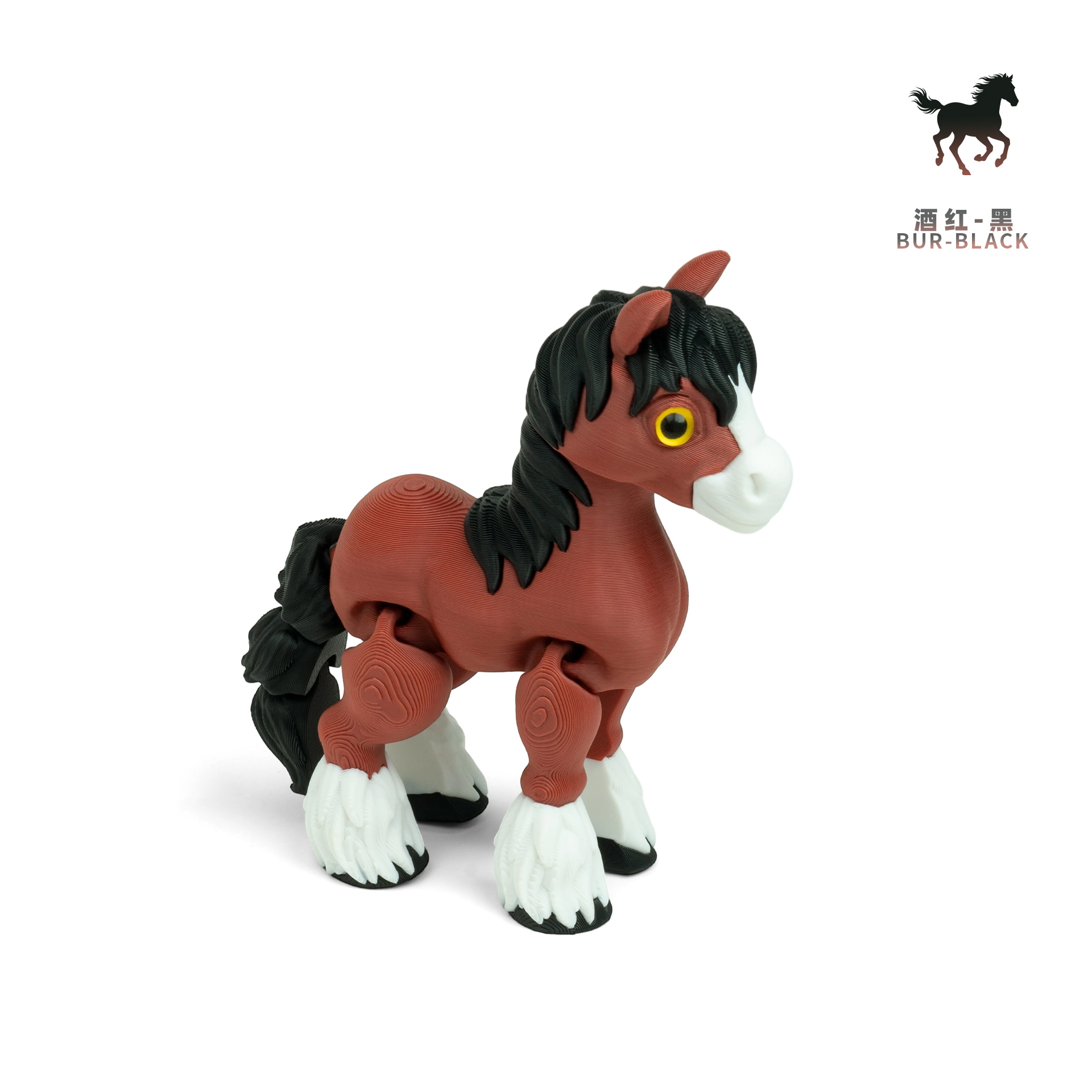 可爱小马驹-酒红-黑色-白