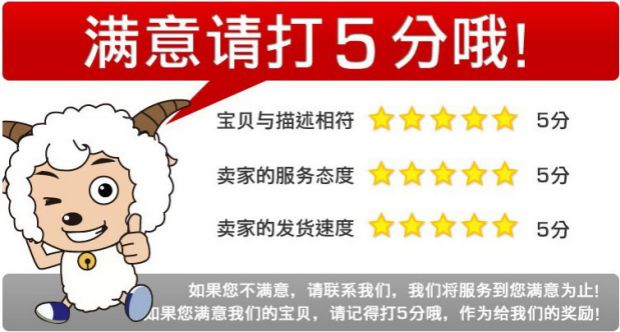 6.如您对于我们的商品和服务满意,请及时确认收货并给予我们5分好评,您的好评是对我们最大的鼓励!