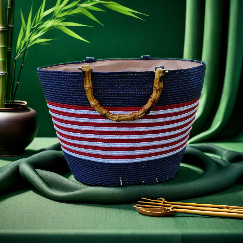 竹把手蓝白红条纹