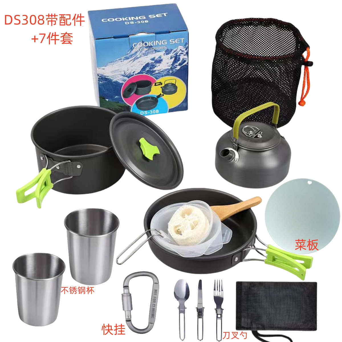 308带配件绿色+杯子*2+刀叉勺+快挂+菜板