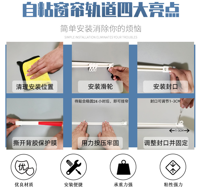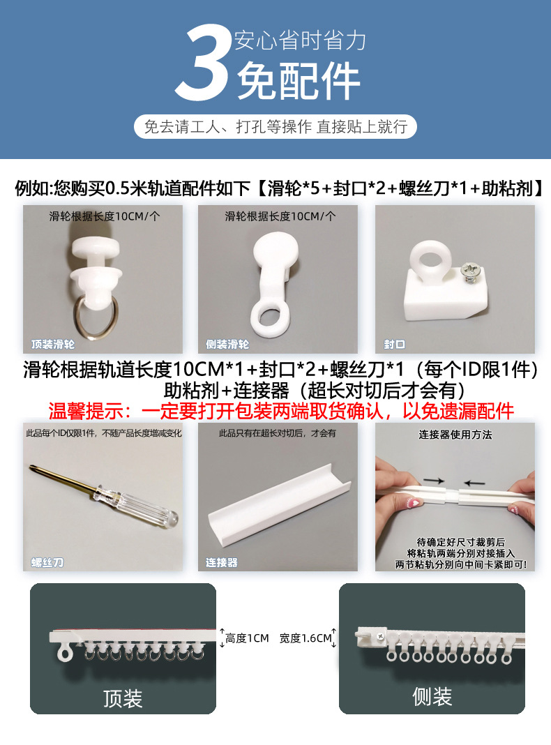 【侧装】免打孔自粘滑轨(送工具)