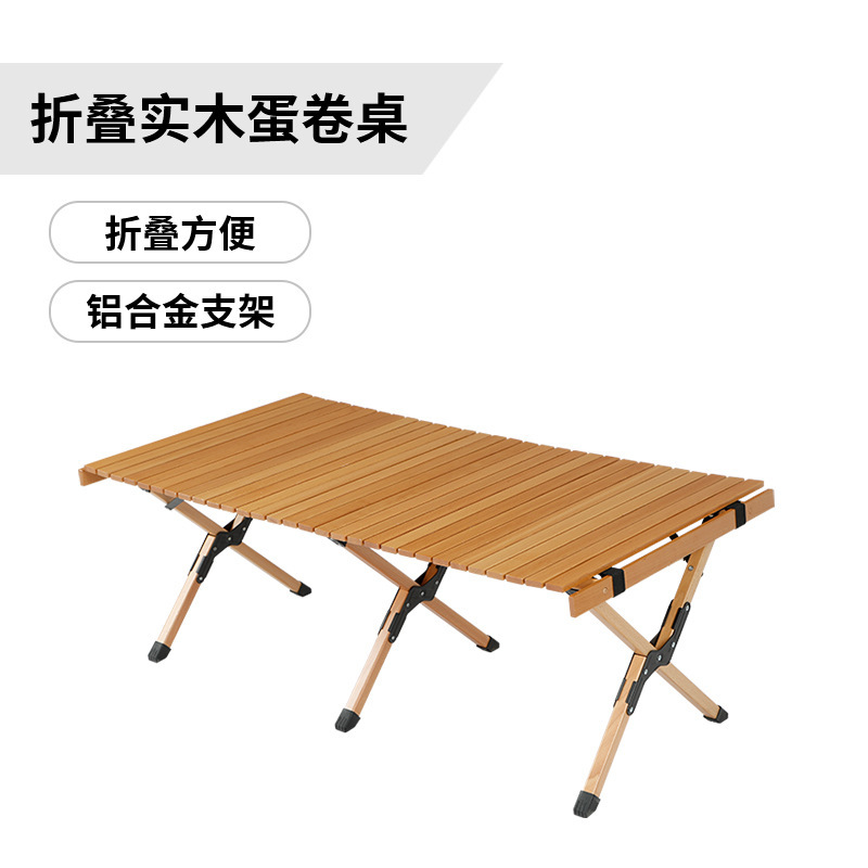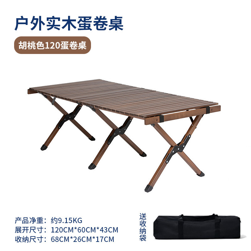 户外折叠桌黑胡桃色榉木蛋卷桌便携式露营桌椅套装野营露营折叠桌