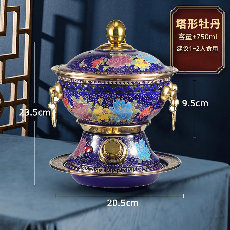 20.5cm景泰蓝小号塔型插电火锅-【牡丹款】