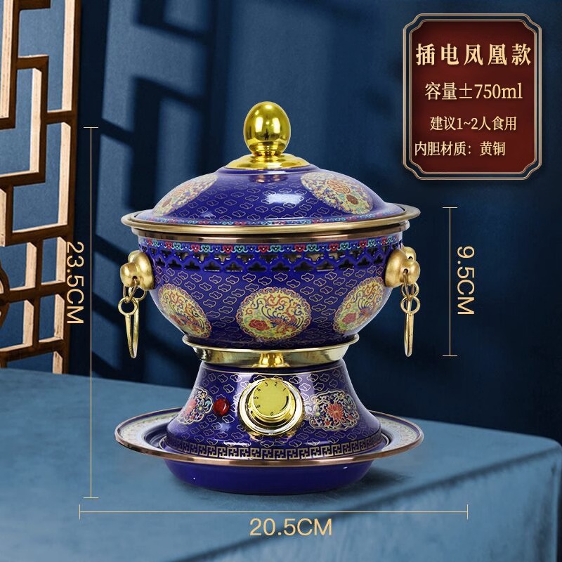 20.5cm景泰蓝小号塔型插电火锅-【凤凰款】