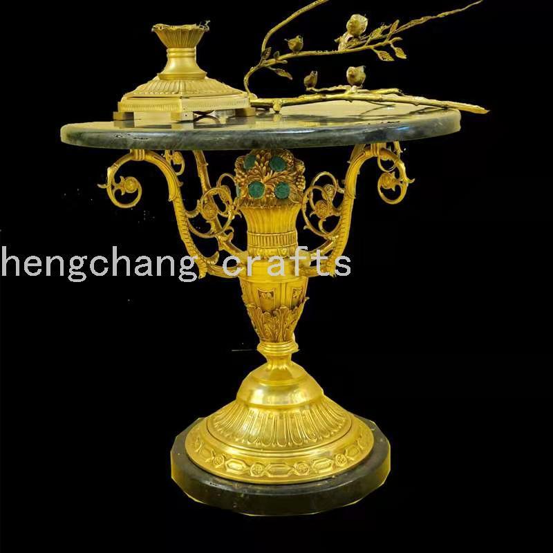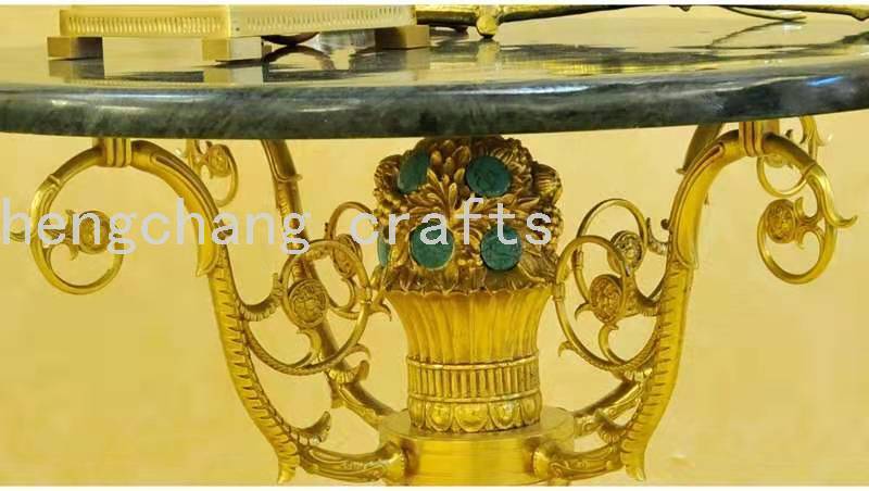意大利巴洛克黄铜雕刻镶嵌热销墨绿色家具大理石休闲桌奢华