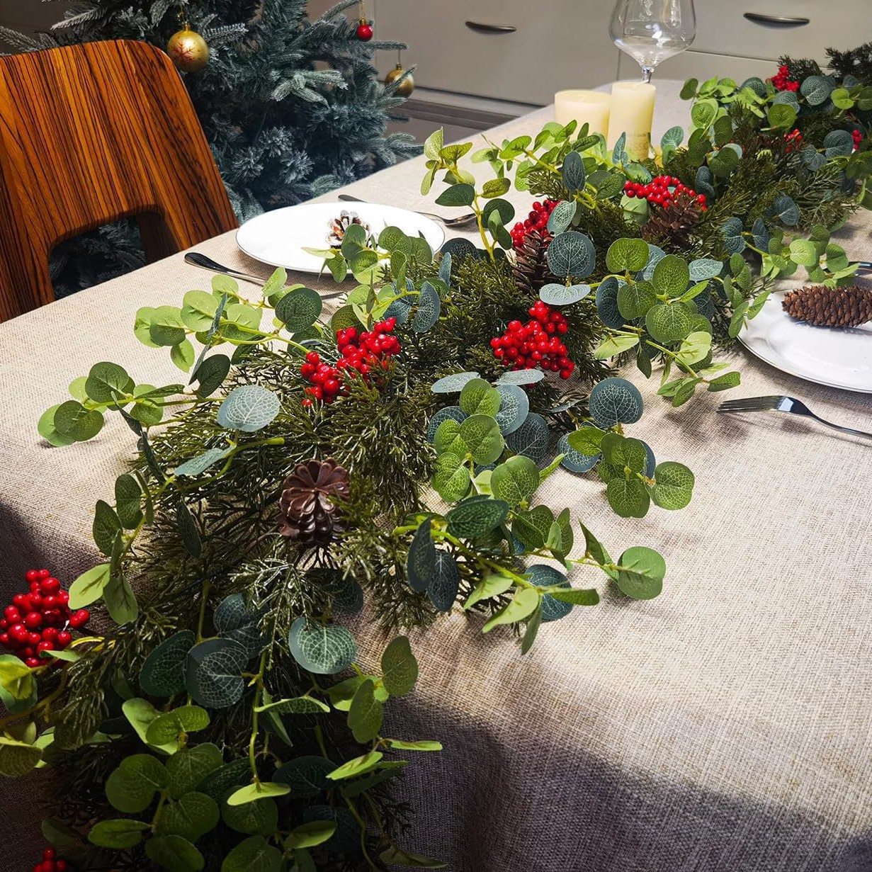 亚马逊新款仿真圣诞松针藤条手感软胶圣诞节装饰人造松针水草藤条
