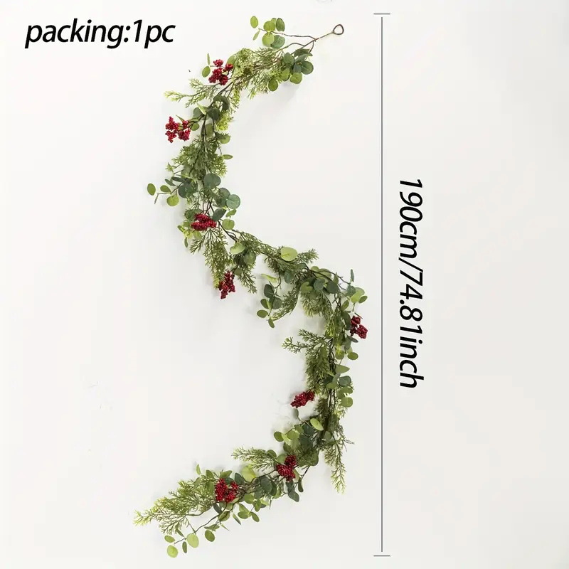 跨境气氛布置装饰藤条仿真绿植松针红果圣诞摆件家居装饰仿真藤条