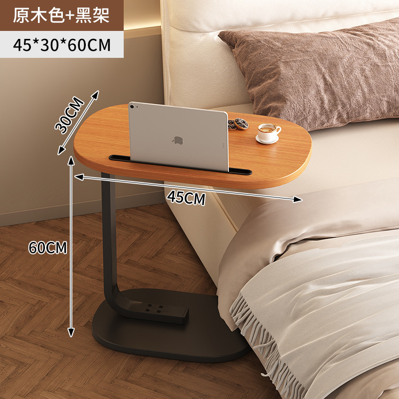 C型卡槽边几-原木色+黑架