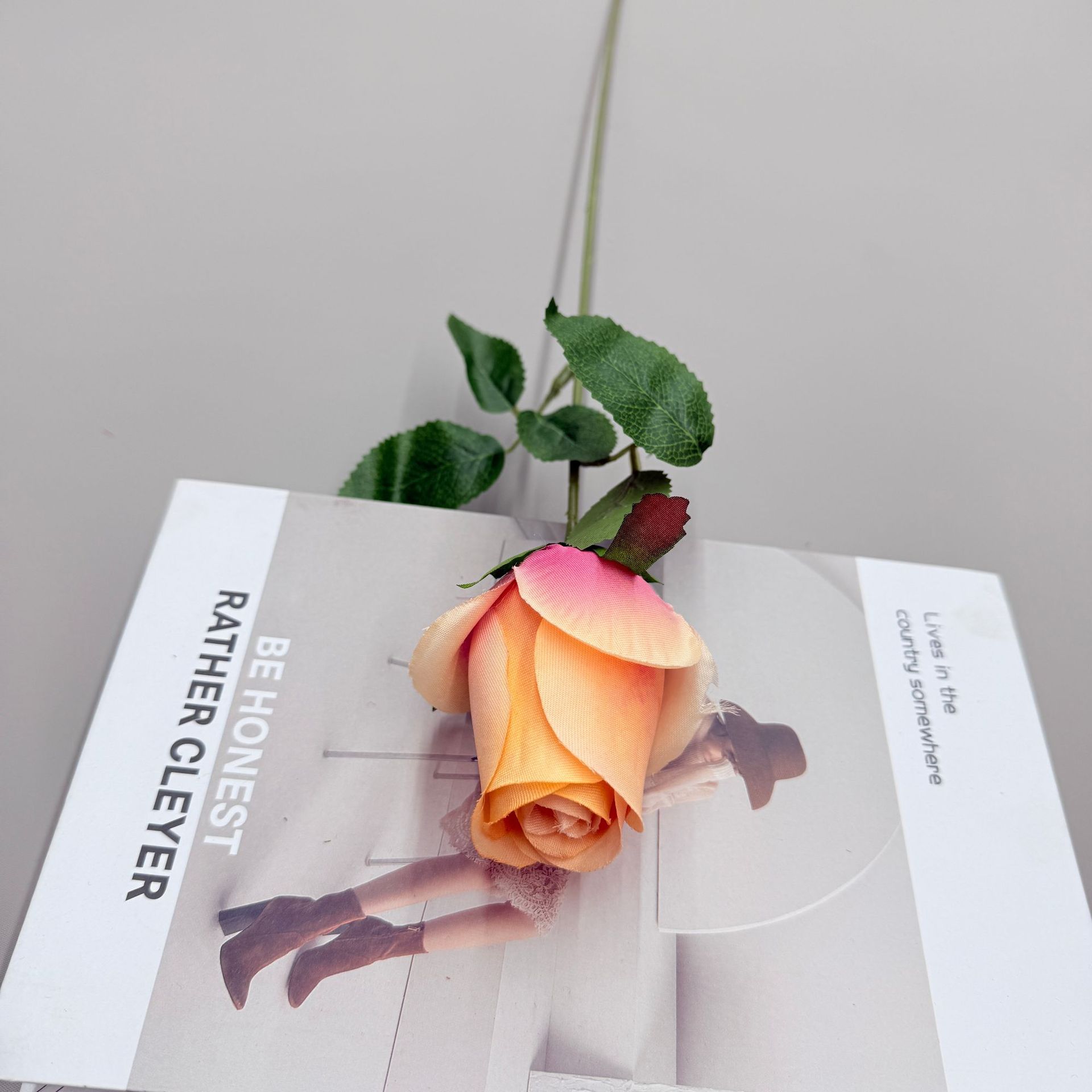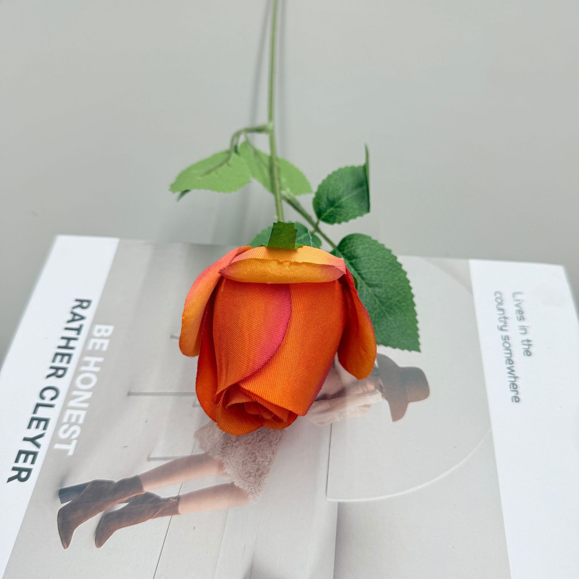 桔色-单只仿真玫瑰花