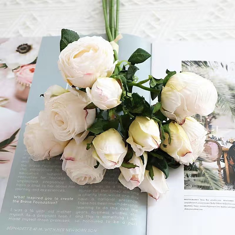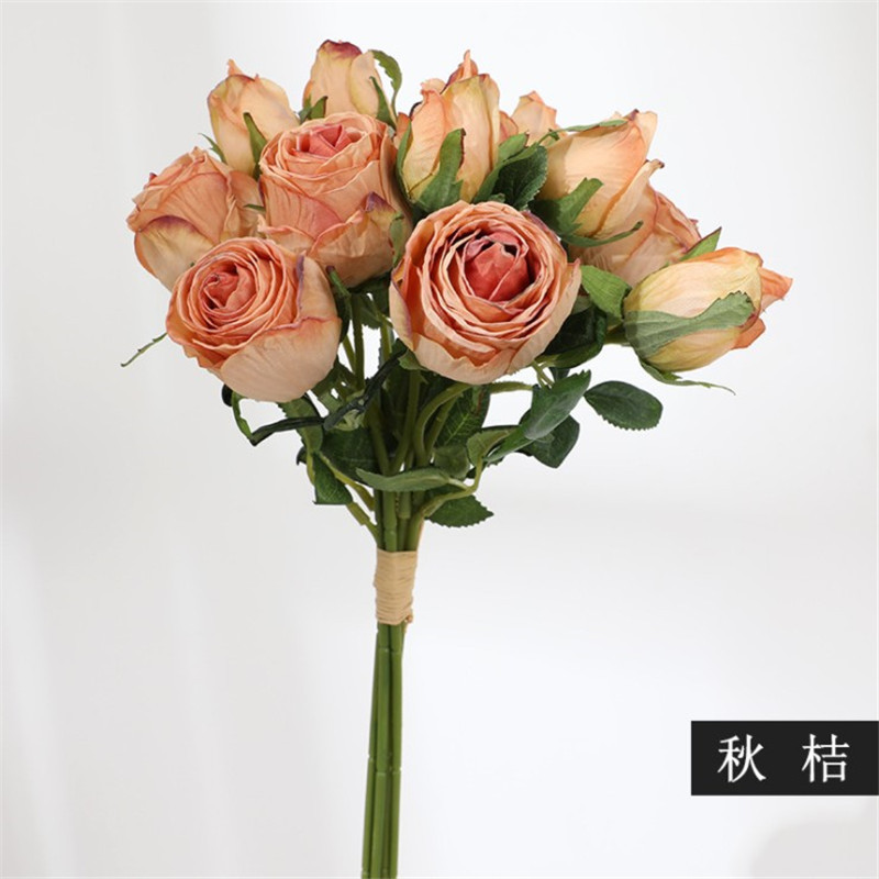 把束干花玫瑰做旧仿真花 仿干花束假花绢花客厅餐桌装饰摄影道具