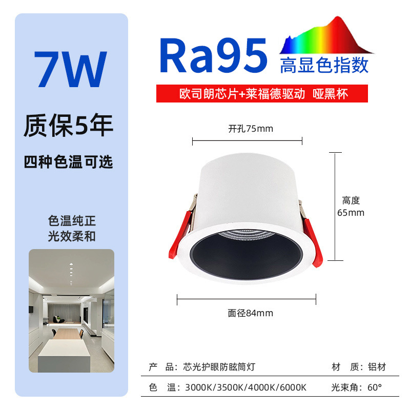 7W 哑白 75开孔
