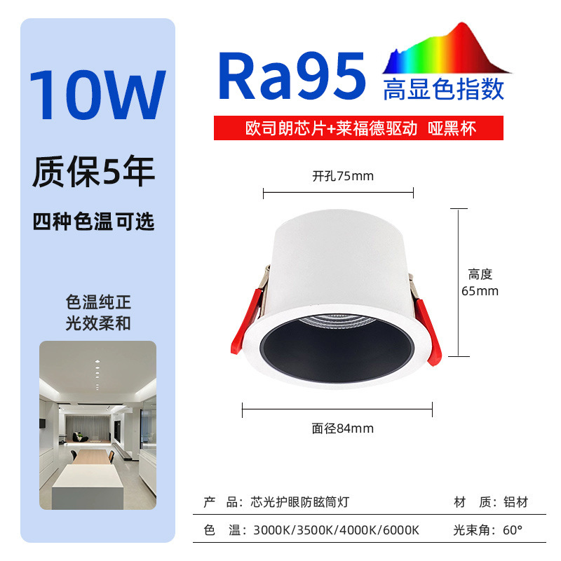 10W 哑白 75开孔