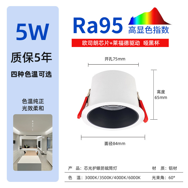5W 哑白 75开孔