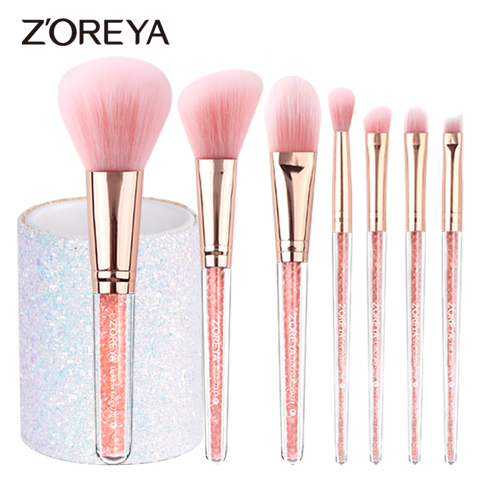 跨境新品粉色散粉修容粉底眼影刷全套女生学生美妆工具收纳桶装化妆刷组合