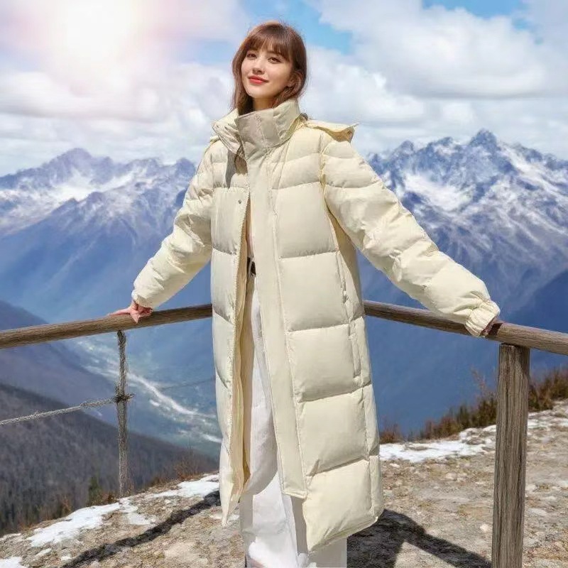 正品长款羽绒服女冬季2025新款超长过膝情侣宽松加厚90白鸭绒外套