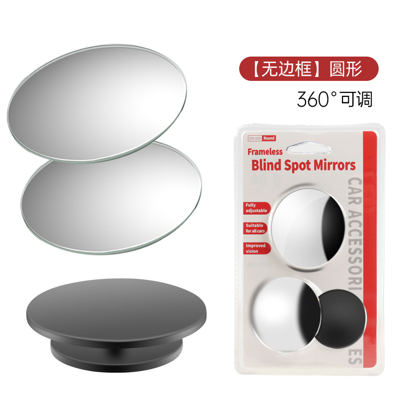 汽车后视镜车载盲点镜 360°车用倒车辅助镜玻璃无边框扇形小圆镜